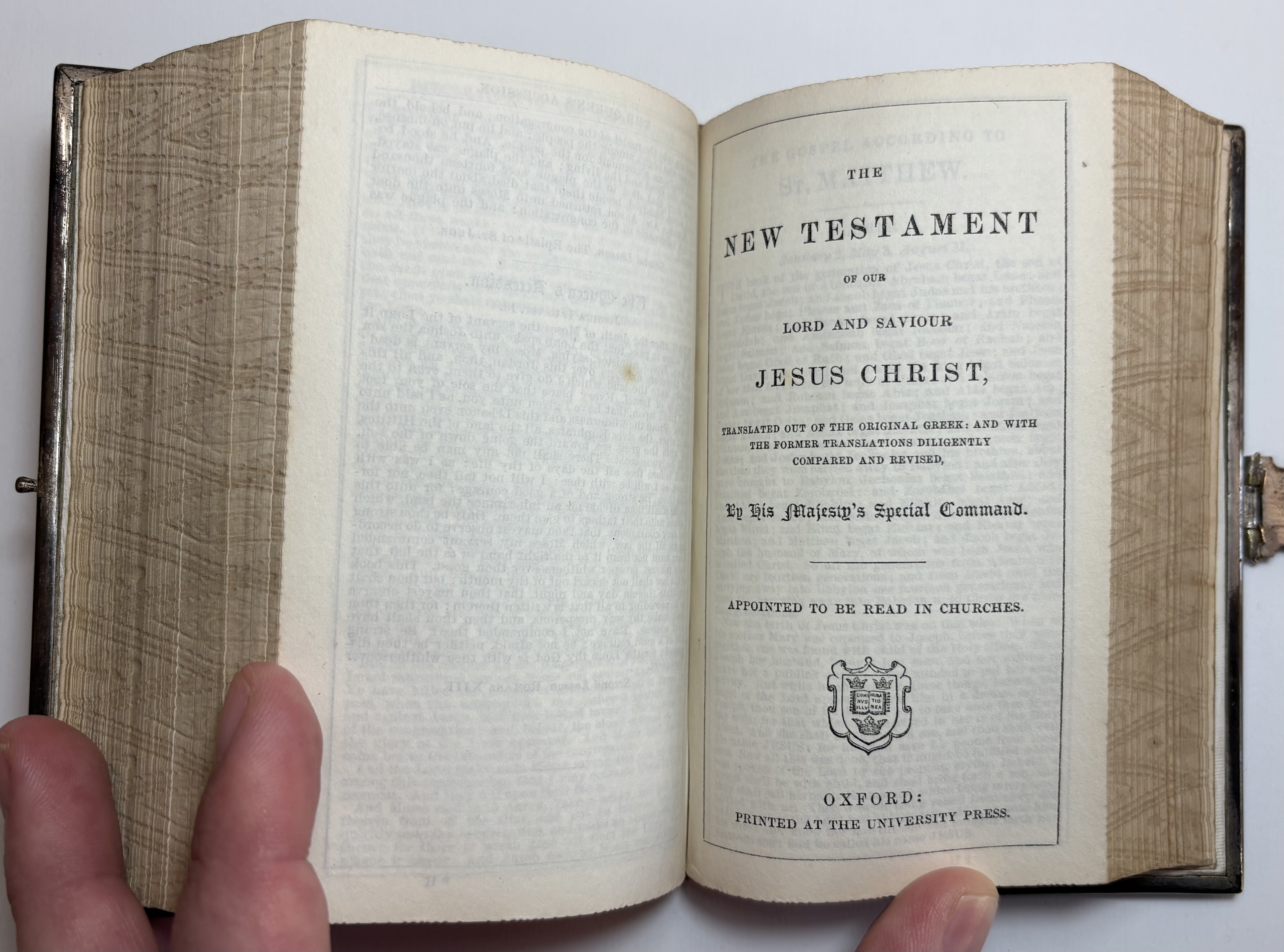 The New Testament of our Lord and Saviour Jesus Christ, Translated out of the original Greek: and with the former translations diligently compared and revised, by His Majesty's Special Command. Appointed to be read in Churches.