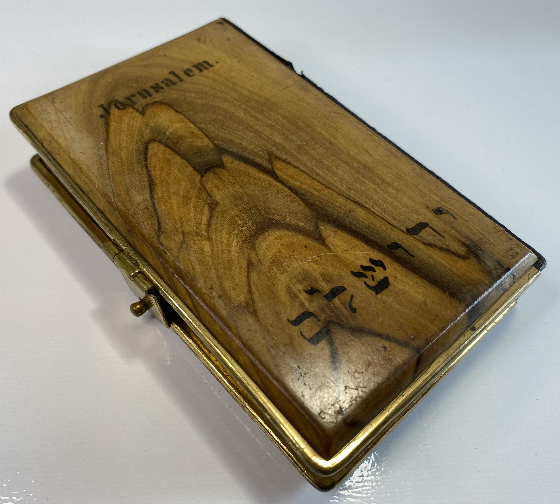 Jerusalem Olive Wood Binding. Sold in Jerusalem to Christian Pilgrim's as a keepsake for their journey, with Olive Wood from the Holy Land.