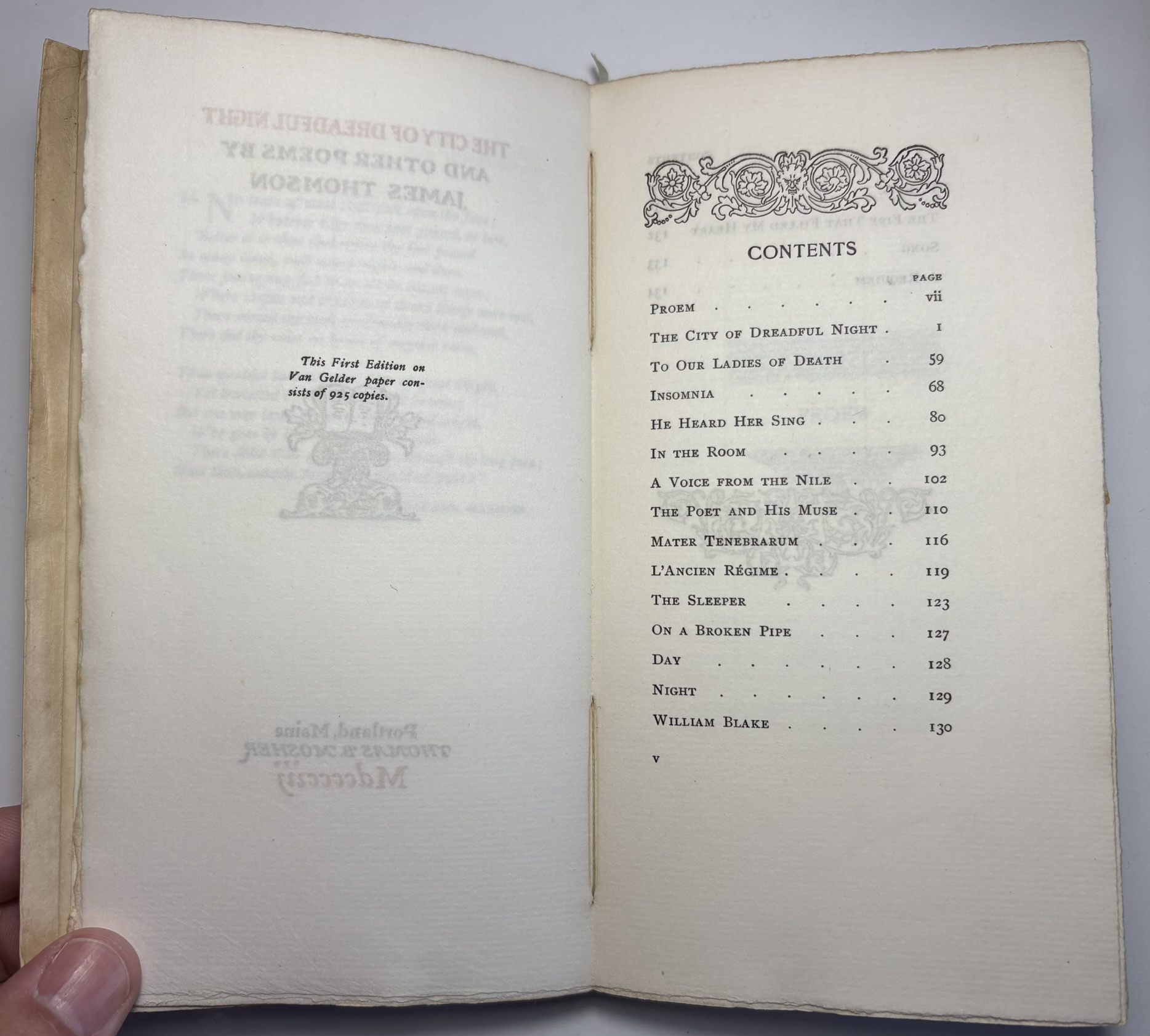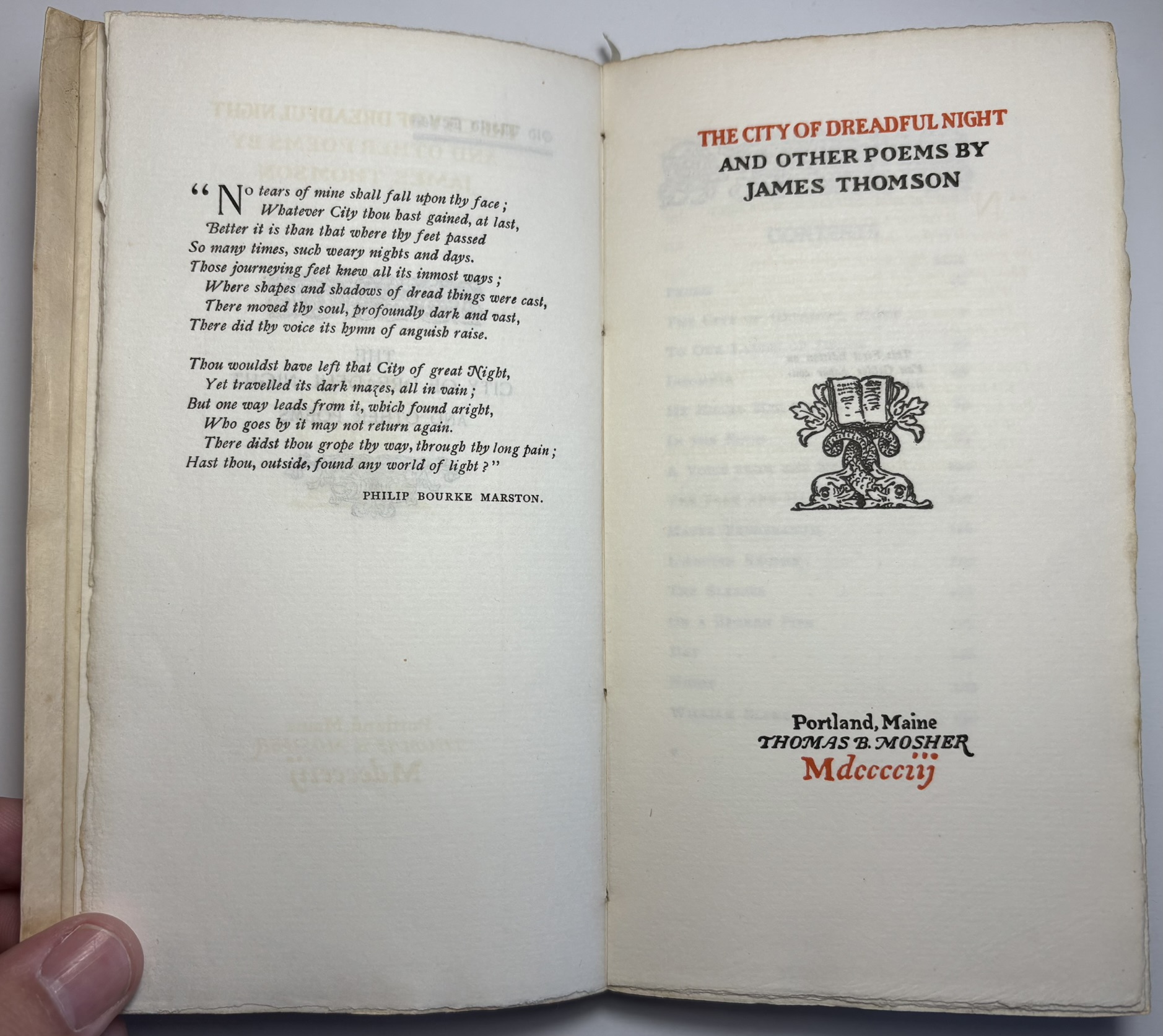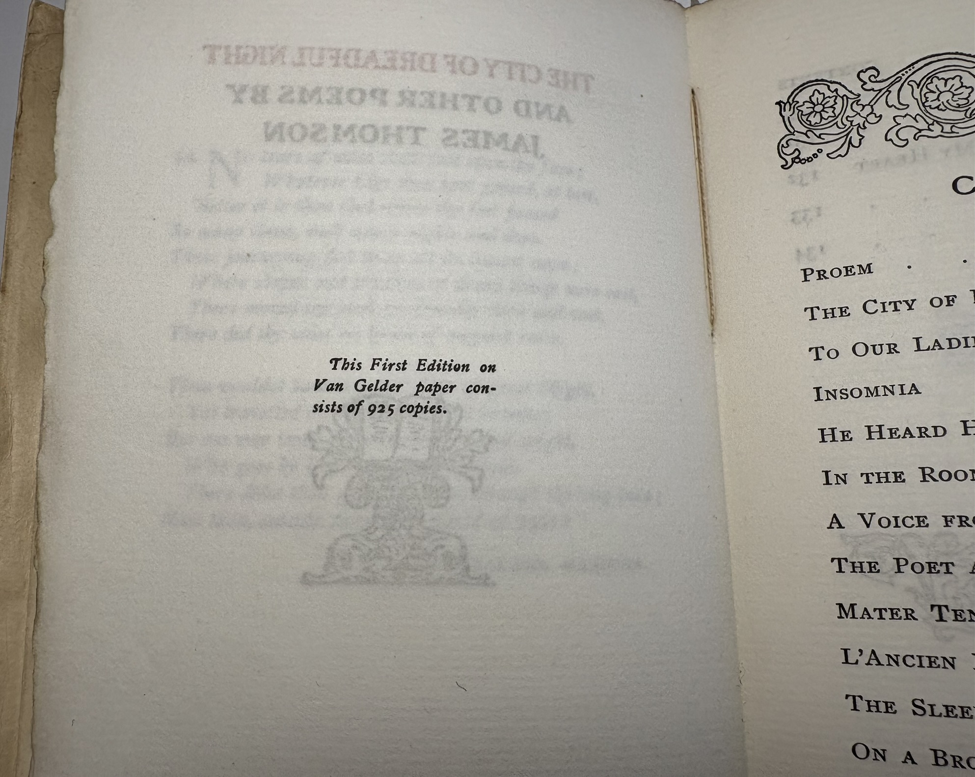 The City Of Dreadful Night And Other Poems by James Thomson, Printed 1903 First Edition, Ltd to 950
