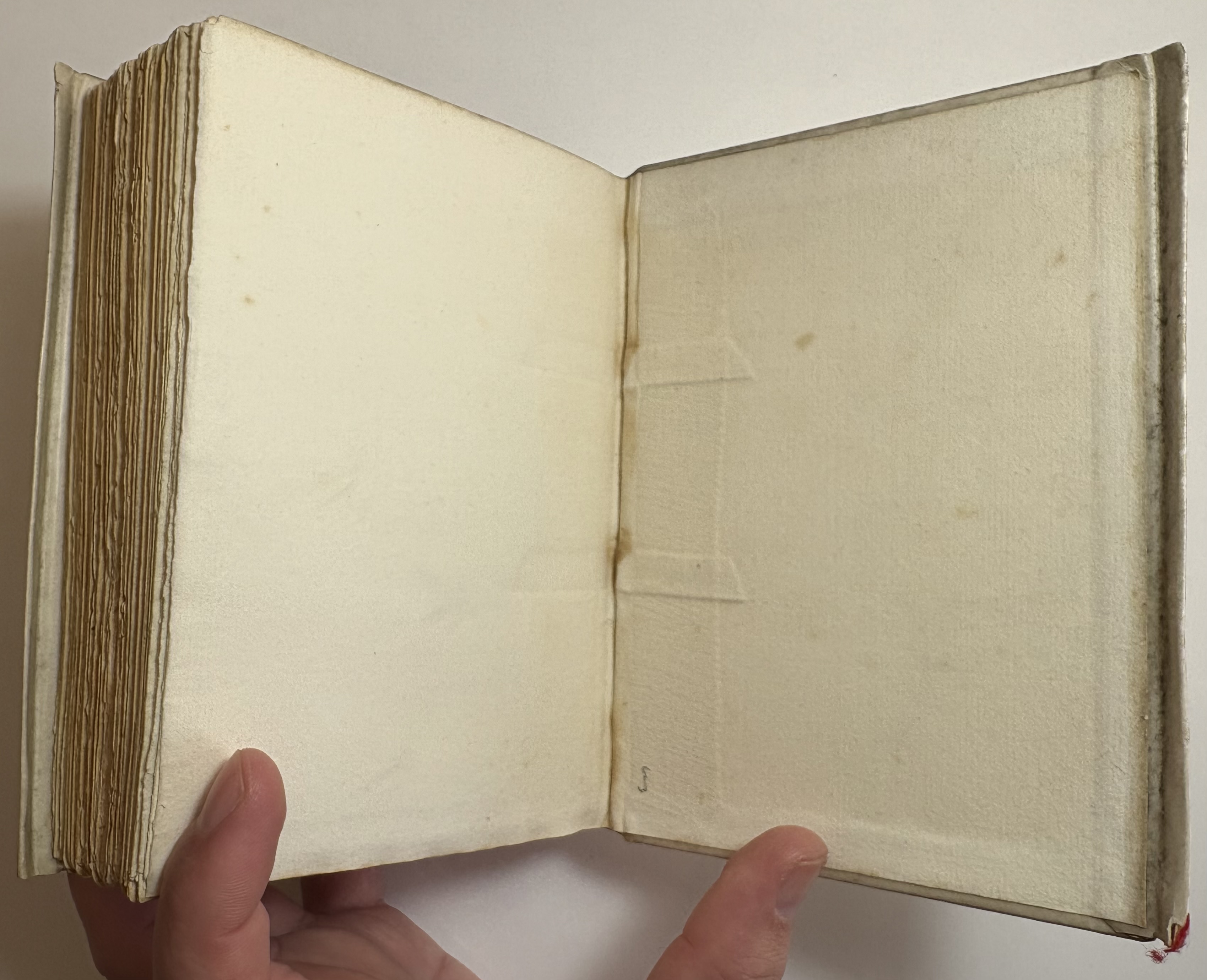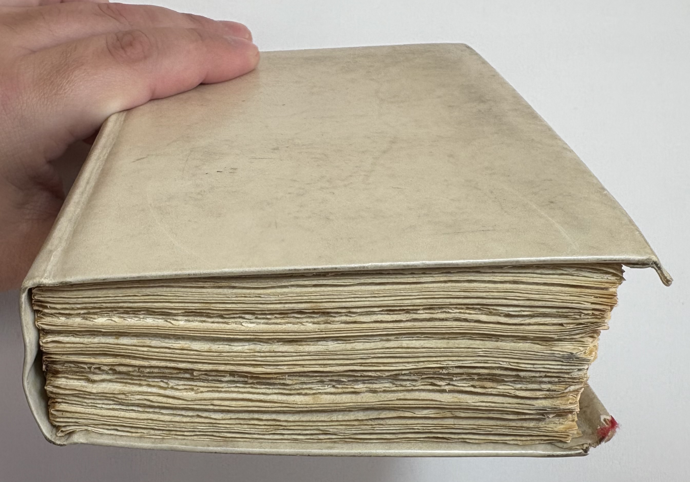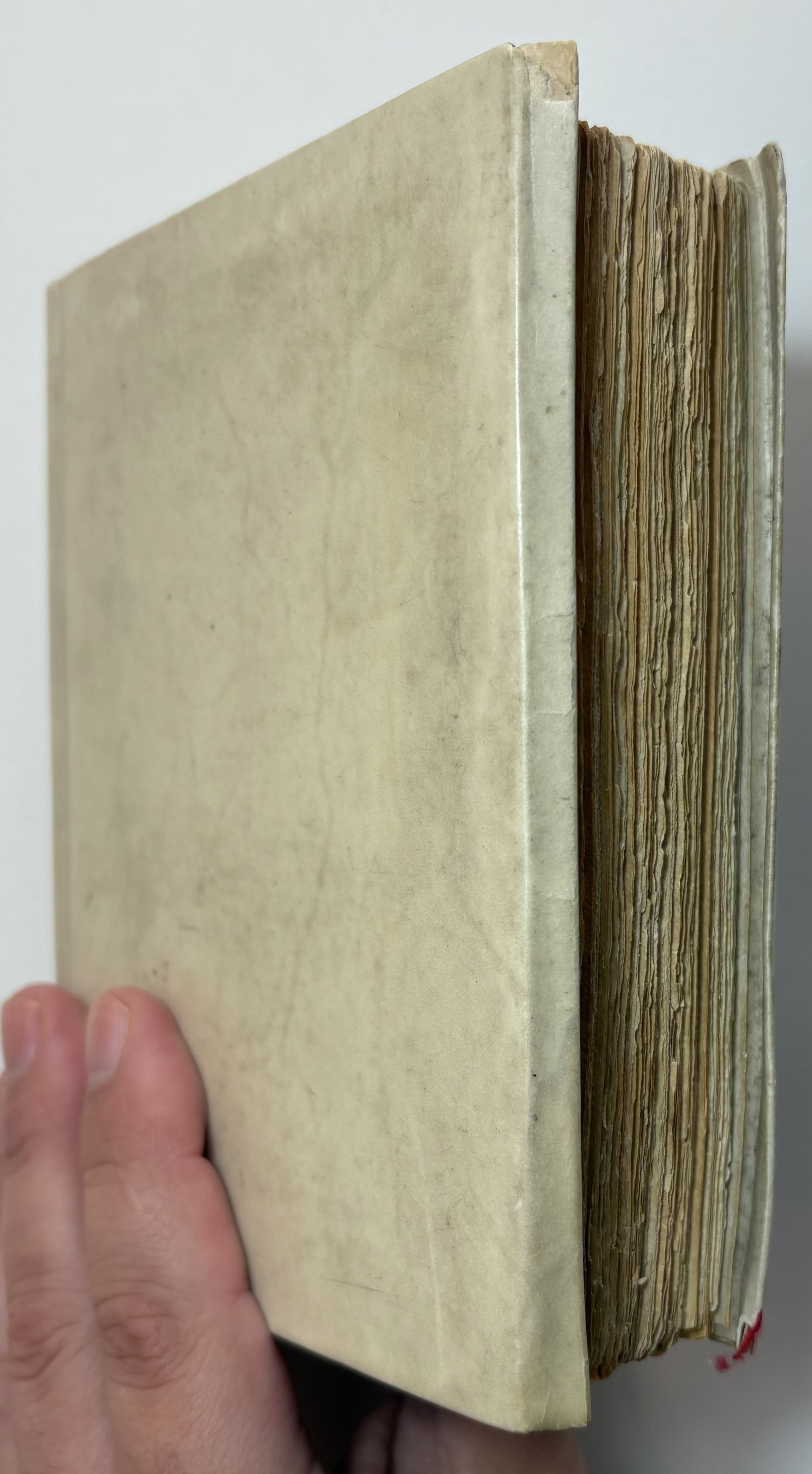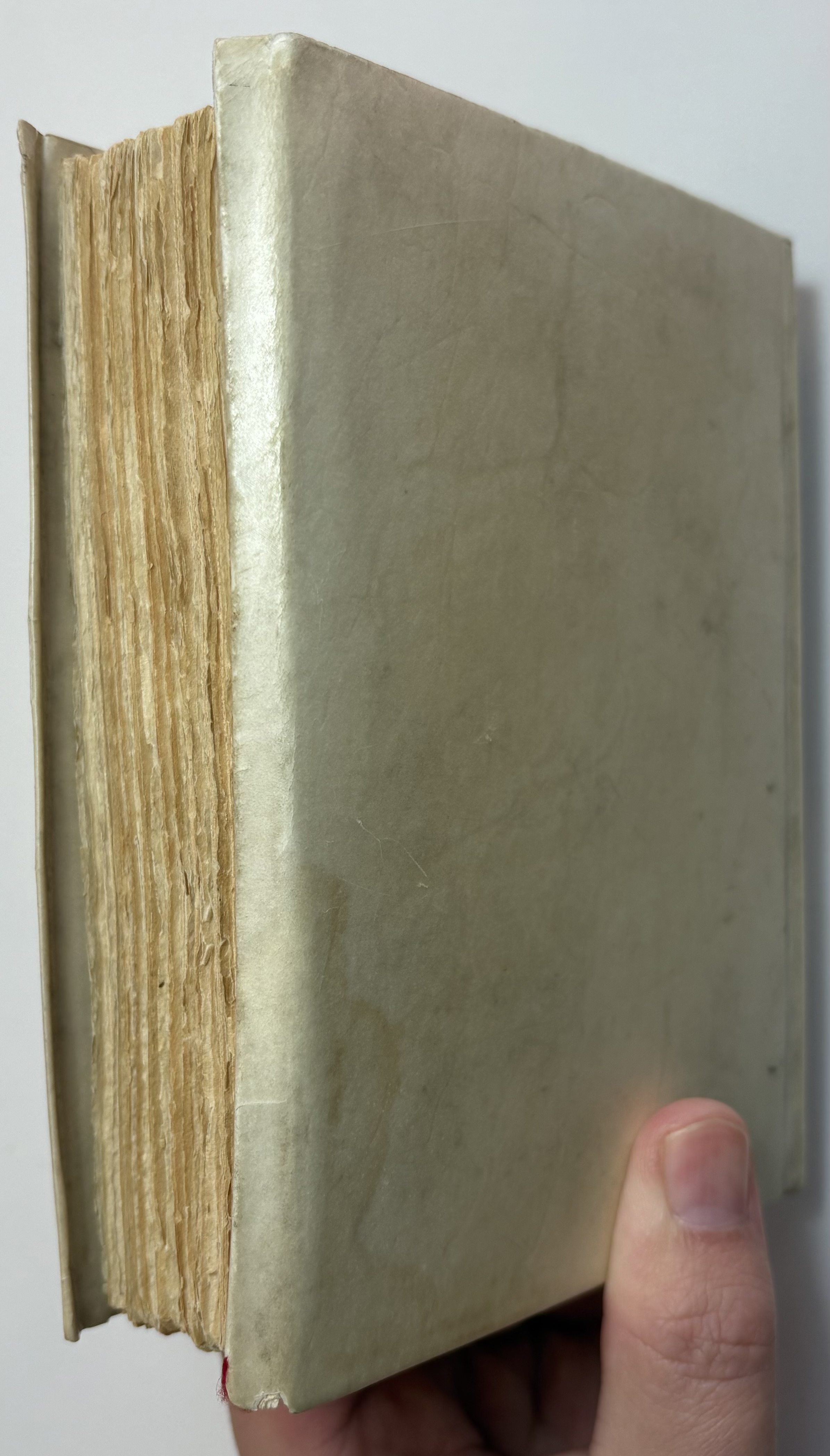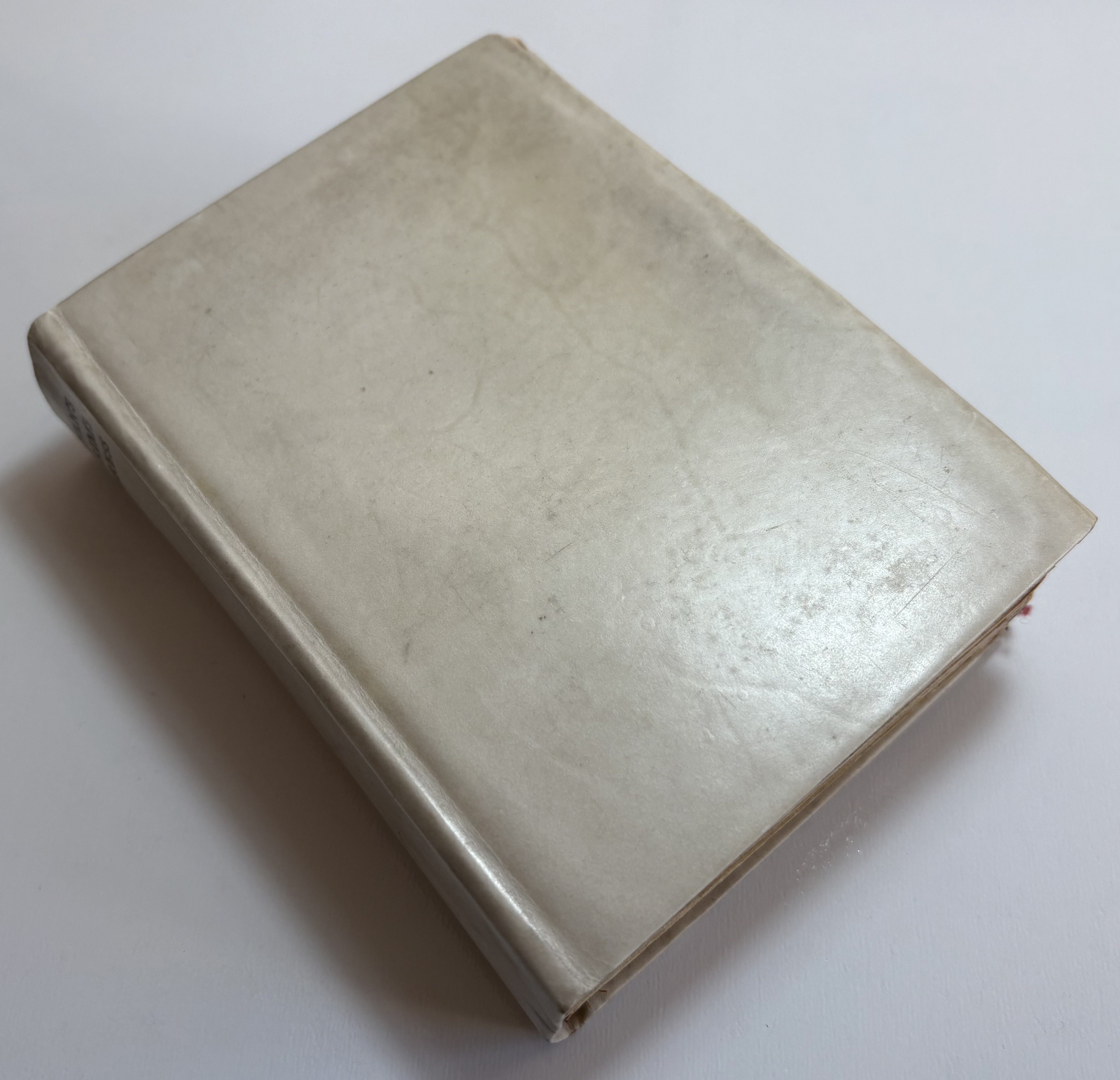 Original stiff vellum, spine lettered in black, title a little faded.Yapp fore edges with some small chipped loss of corners. Vellum lightly soiled, faint water stain on bottom left of rear cover. Joints holding well with no splitting.