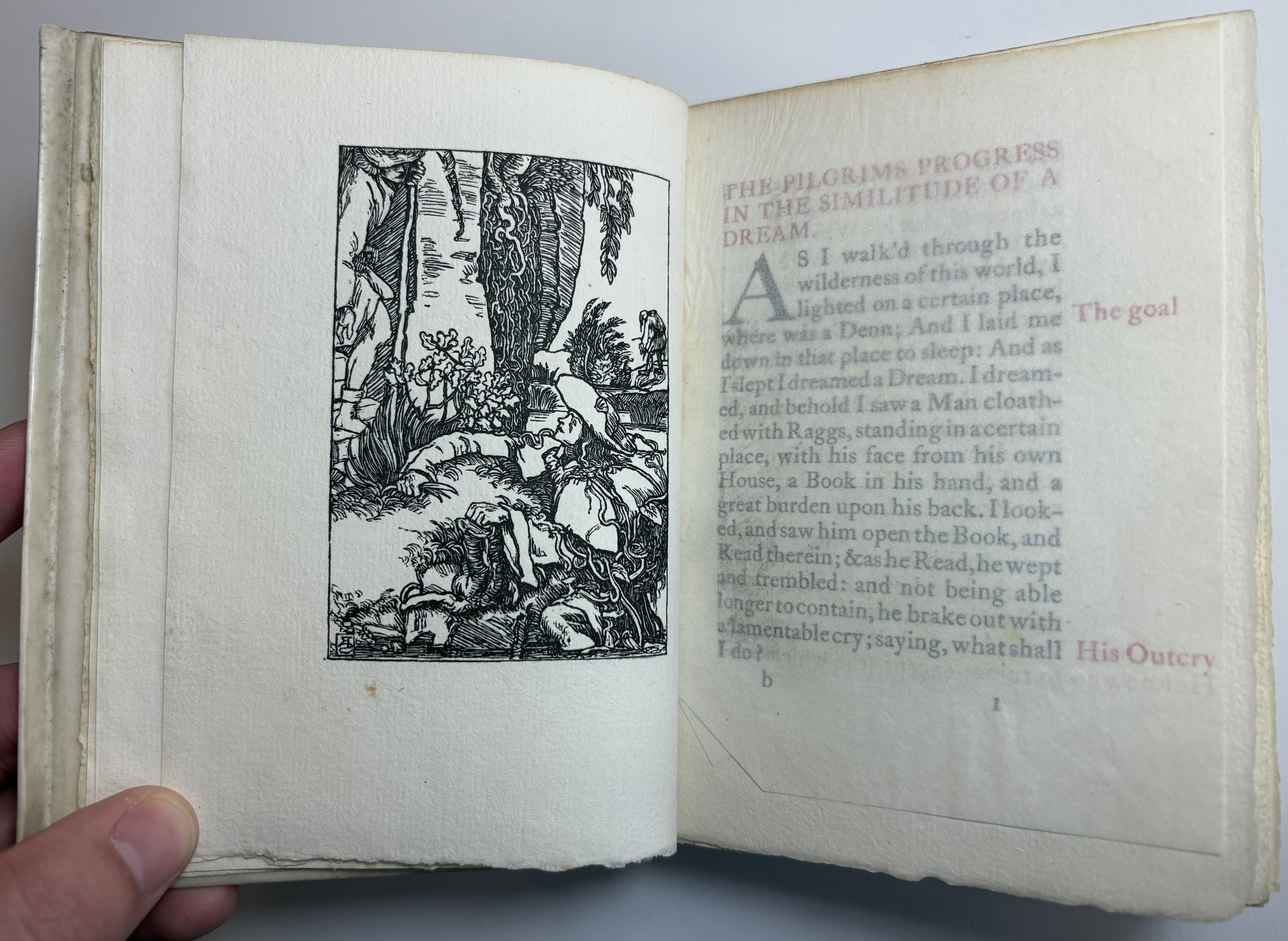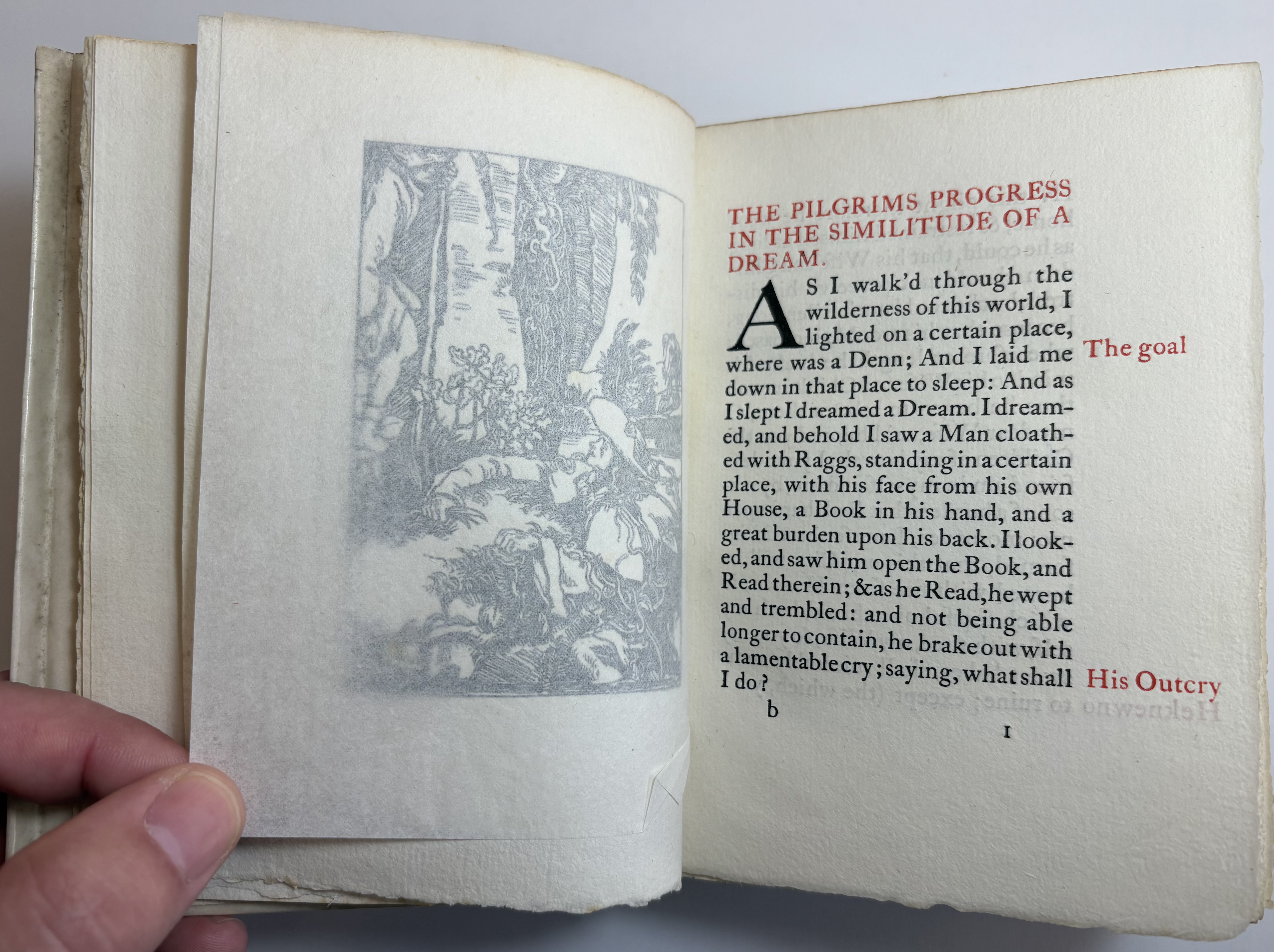 Woodcut frontispiece, with tissue guard, by Reginald Savage. Text printed in red and black in Caslon type.