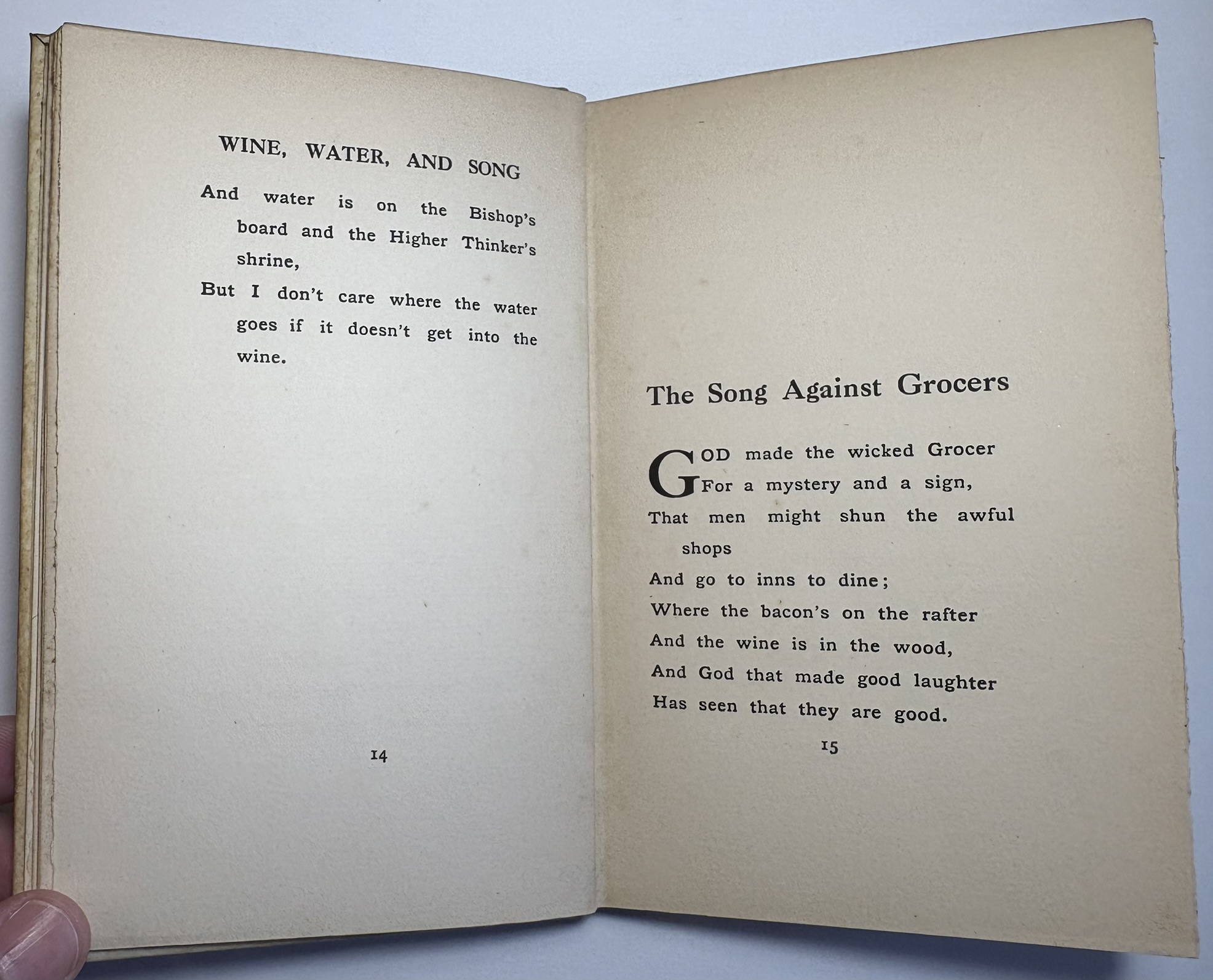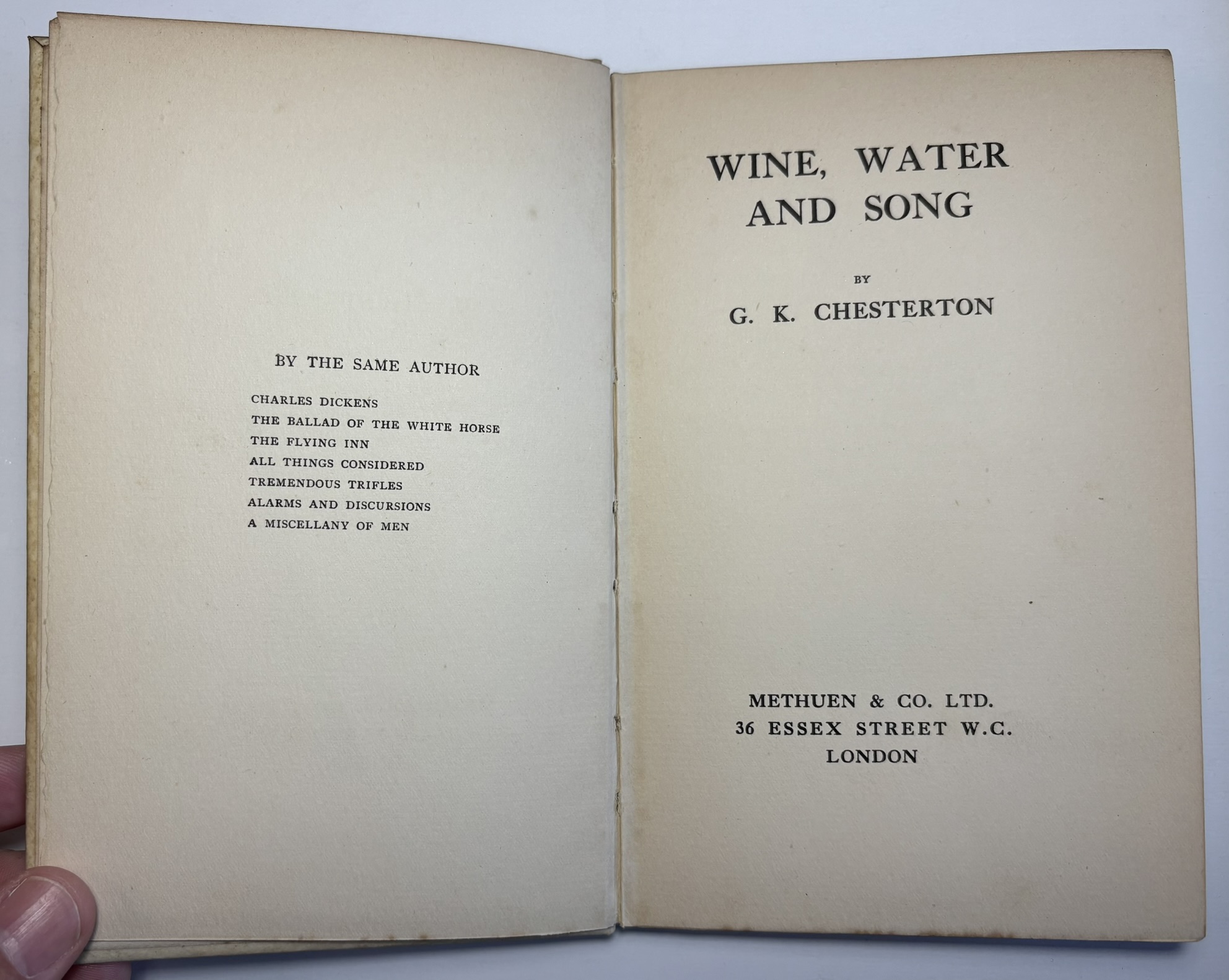 Wine, Water And Song by G. K. Chesterton, Published 1915, Scarce Edition